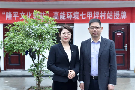 高能环境品牌负责人邓灵燕女士与袁隆平助理黄崎博士在“隆平文化驿站”前合影