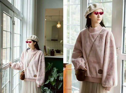 卫衣不仅可以很酷炫,也可以很甜美哦,例如这款粉色加绒卫衣,毛茸茸的材质,亲肤柔软,摸起来舒服极了。颜色也是很温柔的藕粉色,让人忍不住地想去亲近。下面陪一条烟粉色的仙女网纱裙,美美哒小仙女就是你啦!