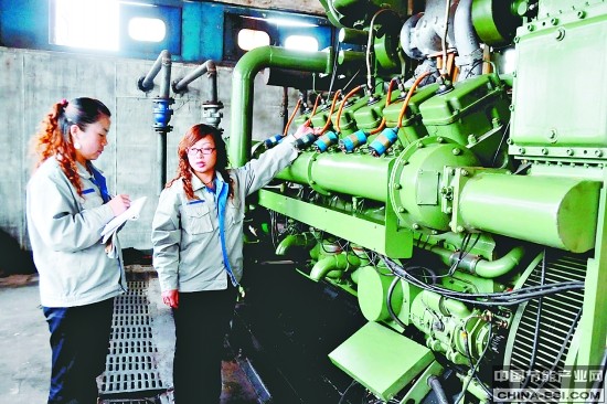 图为10月12日,该矿发电站员工在巡检发电机的运行情况。