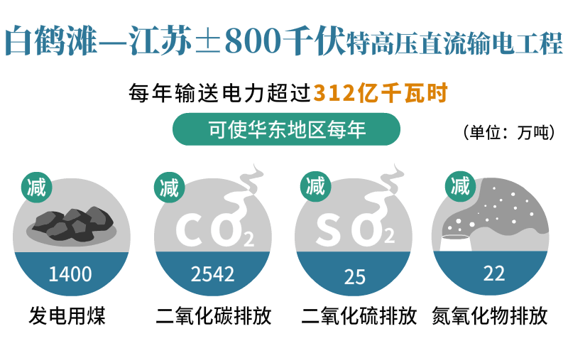 据测算,白鹤滩—江苏工程投运后,每年输送电力超过312亿千瓦时,可使华东地区每年减少发电用煤1400万吨,减排二氧化碳2542万吨、二氧化硫25万吨、氮氧化物22万吨,显著改善华东地区环境质量,为打赢蓝天保卫战、助力美丽中国建设提供有力支撑。
