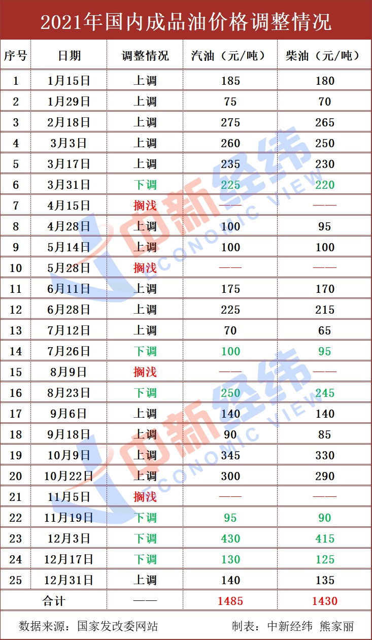 中宇资讯分析师孙亚男也认为,本轮调价将迎“开门红 ”。孙亚男指出,奥密克戎对需求的影响小于预期,美国原油库存降低,WTI、布伦特原油期货不断冲击高位等诸多因素,对国内成品油调价上涨构成直接利好。中新经纬注意到,2021年国内成品油价格经历25轮调整,年末以上涨收官。汽油价格总计上调1485元/吨,柴油价格总计上调1430元/吨,呈现“十五涨六跌四搁浅”的格局。如果2022年首轮调整迎“开门红”,国内成品油价将实现“二连涨”。