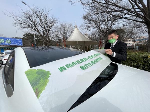 这辆公交车就是当天刚刚开通的“互联网+全民义务植树”科普主题公交车。今年植树月期间,青岛市绿化委员会办公室、青岛市园林和林业局联合青岛城运控股集团交运温馨巴士有限公司在31路公交线推出了国内首条“互联网+全民义务植树”科普主题公交线。邀请设计师对公交车进行整体包装,结合全民义务植树、公园城市建设等内容,将青岛红瓦绿树碧海蓝天的美景搬到了公交车上,成为岛城靓丽的风景线。