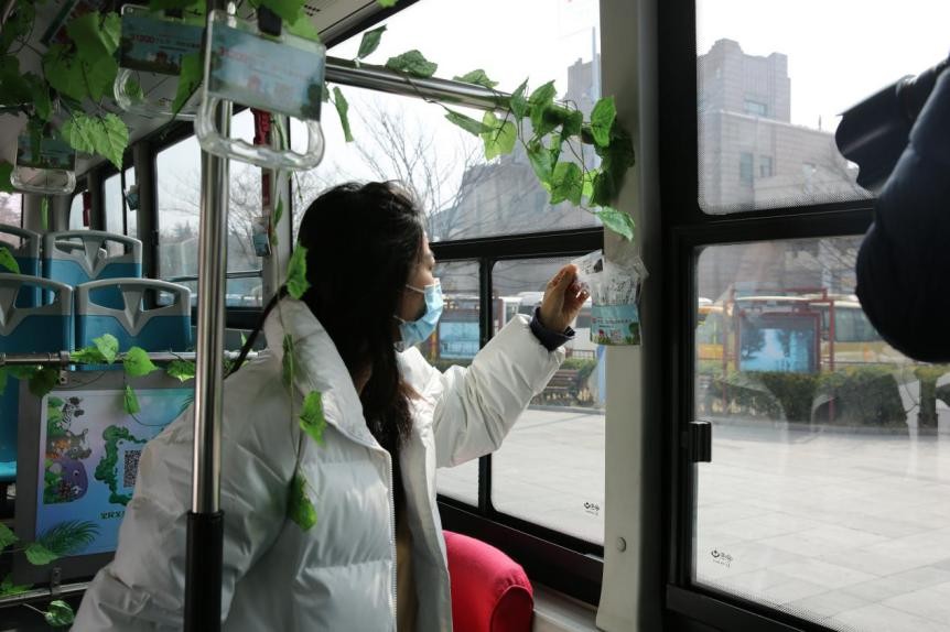 相对于以往的主题车厢,‘互联网+全民义务植树’科普主题公交车打造的是一种全新的沉浸式互动型主题车厢。乘客们上车之后,不仅能了解我市义务植树有关情况,学习义务植树有关知识,还能通过手机扫码观看科普动画片、玩游戏、参与答题抢红包等,进行交互式的活动体验。
