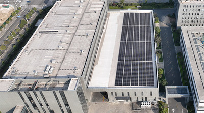 从均胜普瑞宁波工厂喷漆车间上空鸟瞰,600多片光伏板分成五排整齐地排列在工厂屋顶,而其余车间屋顶的基础组件亦已准备就绪。整个园区光伏电站项目将投用超过1万片光伏板,预期年发电量500万度,所消耗光伏清洁电力相比常规电力降低用电成本15%以上,减排二氧化碳近5000吨。预计三个月后,整个均胜新工业城屋顶分布式光伏电站项目将完工投用。