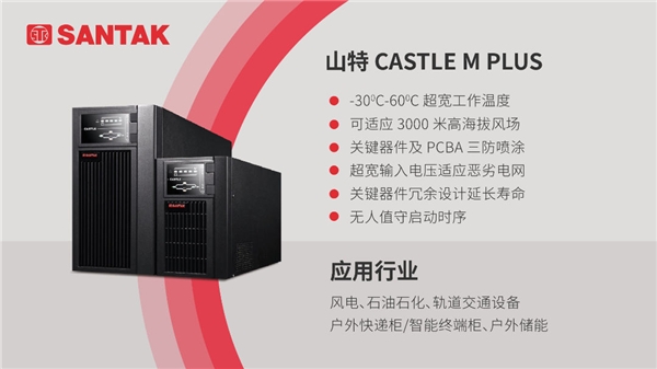 山特 CASTLE M PLUS UPS 拥有智能化无人值守属性,便于对设备进行告警监测和自启动逆变模式。当市电上电旁路输出时,UPS 直接自启动进入逆变输出模式;当设备有任何异常状态,标配干接点卡,会及时提供告警信号,针对性解决了风电行业 UPS 供电系统异常问题的警醒处理。