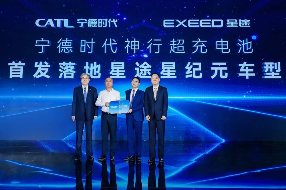 10月16日,奇瑞集团与宁德时代共同宣布,神行超充电池落地奇瑞星途星纪元,双方战略合作关系得到进一步深化。奇瑞控股集团党委书记、董事长尹同跃,奇瑞汽车股份有限公司执行副总经理、奇瑞汽车工程技术研发总院院长CTO高新华博士,宁德时代董事长、总经理曾毓群,宁德时代市场体系联席总裁韩伟出席并见证。