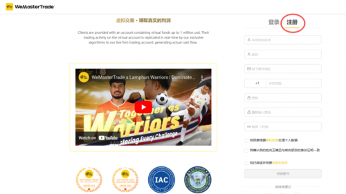 1.  打开WeMasterTrade官网(//wemastertrade.com/zh/),点击右上角“登陆”,点击“注册”。