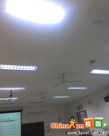 一层共有12间教室,1间没有被启用;1间是拉着窗帘关着灯,老师开着幻灯片(背景是深色,所以大家都可以看得清楚);剩下10间,有的屋里只有1-2人上自习,可是灯全开着,窗帘也都全拉开的(更可气);有的是拉着窗帘,开着灯。