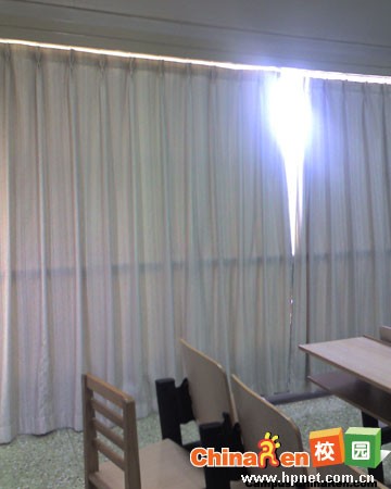 就在此时,老师换了一张幻灯片。坐在前排的几名同学说;“老师,我们看不清楚!”,随后老师颁布了一道命令:“把后面的窗帘拉上!”