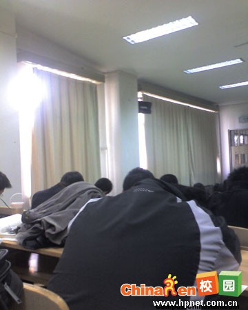 于是阳光明媚早晨,北京某大学一间教室被全部拉上窗帘,开着36盏日光灯,看着平均10-20分钟才换一次的换灯片。而这个容纳近200人的阶梯教室,屋里有4组左右暖气,已经供暖,可是后面的2个大空调(温度设定是26度),哄哄的喷着暖风,烤得人发慌。