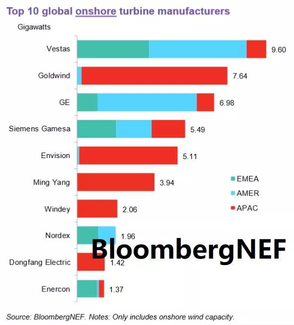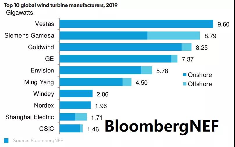 BNEF重磅发布 | 2019年全球风电整机制造商市场份额排名