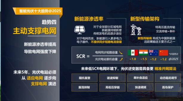 主动支撑电网:随着新能源渗透率提高,导致电网强度下降。未来5年,光伏电站必须从适应电网逐步向支撑电网演进。