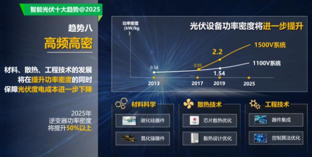 高频高密:2025年逆变器功率密度将提升50%以上。功率密度越高,使用成本和使用体验都会越好。