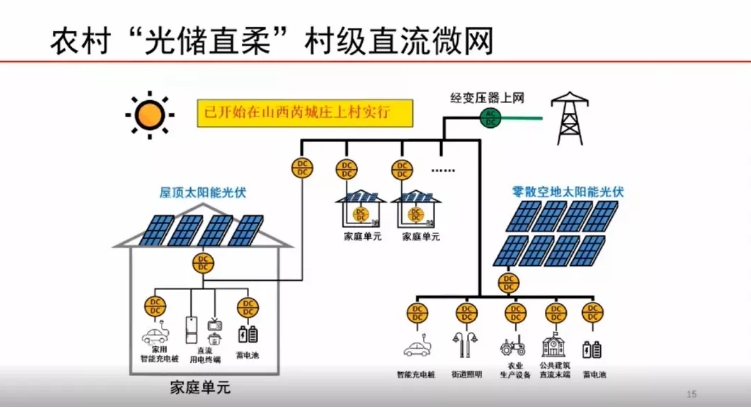 这些年,经过大规模农村资源普查,我们得到一个结论,即尽管农村建筑规模不大,但是屋顶面积特别大,包括住房、粮房、仓库、猪圈等,把这些屋顶装上光伏,充分开发利用起来,装机容量几乎可以达到20亿千瓦,全年发电量可达到3万亿kWh, 这远大于目前我国农村的全年用电量。于是,可以考虑:是否应该发展以屋顶光伏为基础的全部电气化的农村新能源系统,靠光伏电力解决农村的全部用能?在山西芮城,就有一个代表性模式。