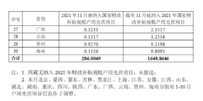 新增2.86GW!国家能源局发布11月户用光伏项目信息
