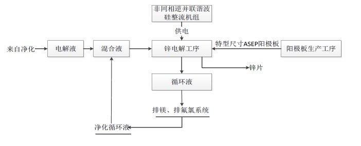图1  锌电解高电流密度节能技术工艺流程