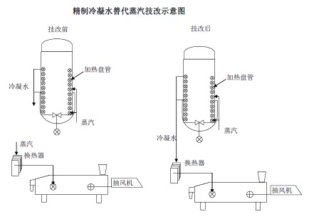 利用蒸汽冷凝水的热能替代蒸汽作用于物料反应。