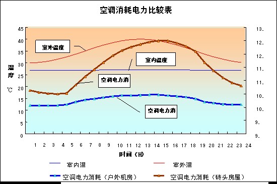 图四为我们在某基站的实测数据对比,可以看出户外机房的明显的节能作用,平均具有20%以上的节能效果。